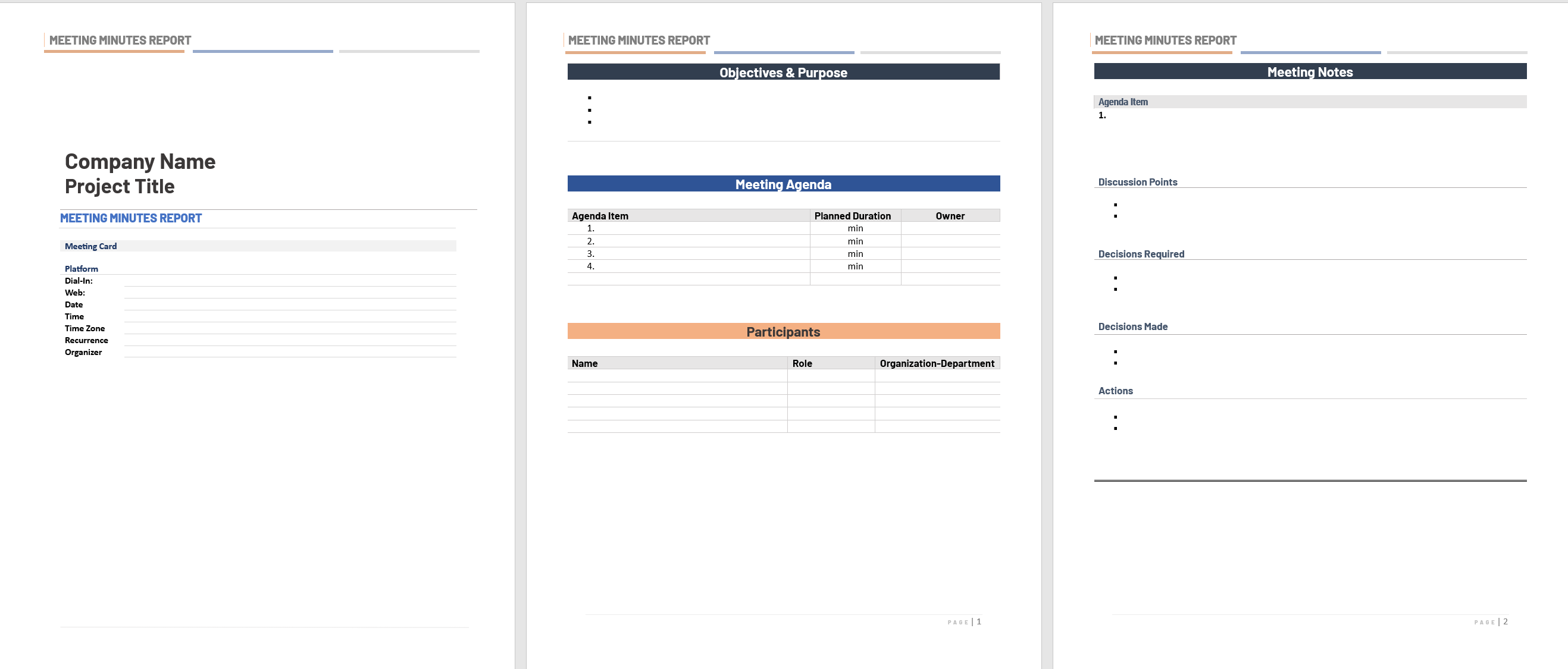 - Fast to fill in — built for recurring meetings with reusable sections and consistent headings.